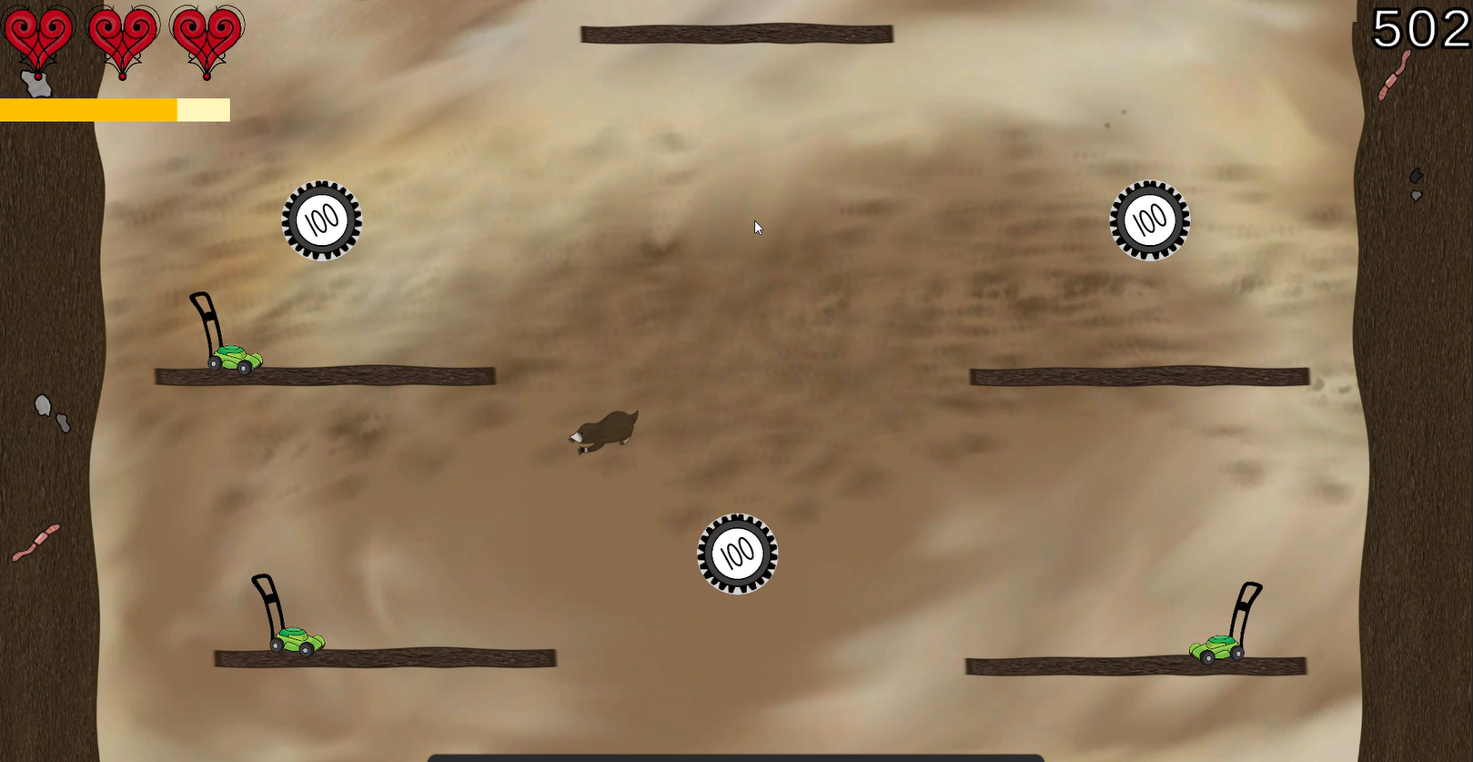PinMole is an Arcade-like game about a mole making its way up through its burrow, invaded by human dangers like deadly lawn mowers and owl-like drones.